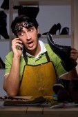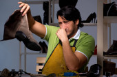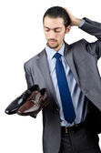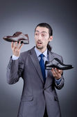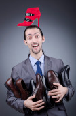 człowiek z szeroką gamą obuwia