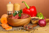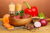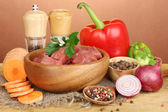 Surowe mięso i warzywa na białym tle na Zielone Świątki?