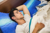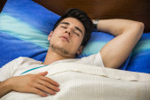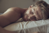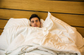 Zdjęcie "Przystojny sprawny młody człowiek śpi w łóżku" może być wykorzystywane do celów osobistych i komercyjnych zgodnie z warunkami zakupionej licencji Royalty-free. Obraz jest dostępny do pobrania w jakości wysokiej rozdzielczości do 5760x3840.