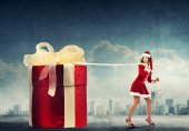 młoda kobieta uśmiechający się gospodarstwa prezent