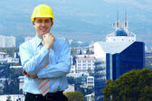 młody architekt sobie stały kask ochronny na moun