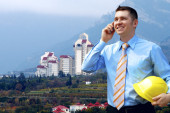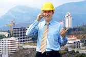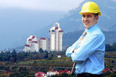 młody architekt sobie stały kask ochronny na moun