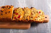 Bara brith tradycyjnych walijskich owoców teabread,