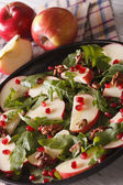 Sałatka z jabłka, granatów i rakiet zbliżenie. poziome