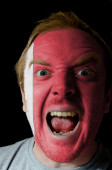 twarz człowieka poważne patriota pomalowane w kolorach flagi Argentyna