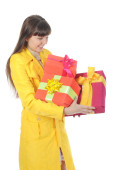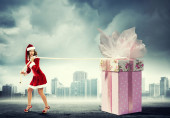młoda kobieta uśmiechający się gospodarstwa prezent