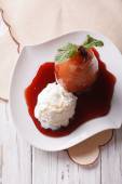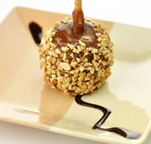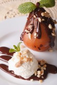 Obsługa: gruszka z czekolady i orzechów zbliżenie. pionowe