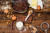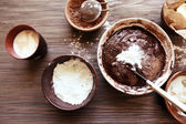Przygotowanie ciasta czekoladowe ciasto na stole z bliska