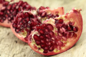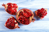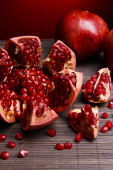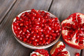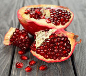 Świeże, dojrzałe granat na drewnianym stole z bliska