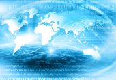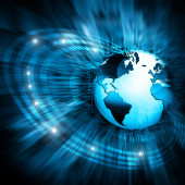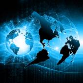 Najlepsza koncepcja internetowa globalnego biznesu. Globus, świecące linie na tle technologicznym. Elektronika, Wi-Fi, promienie, symbole Internet, telewizja, łączność komórkowa i satelitarna