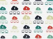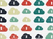 Insurance concept: Family And Palm icons on wall background