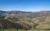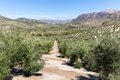 Drzewa oliwne, osiągając na horyzoncie w Andaluzji