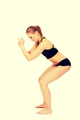 Zdjęcie "Fitness kobieta robi ćwiczenia rozciągające." może być wykorzystywane do celów osobistych i komercyjnych zgodnie z warunkami zakupionej licencji Royalty-free. Obraz jest dostępny do pobrania w jakości wysokiej rozdzielczości do 5760x3840.