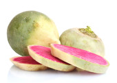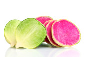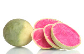 plasterki rzodkiewki na białym tle