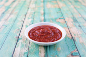 Spaghetti z sosem w misce biały