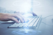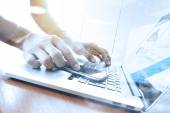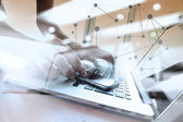 Fale światła niebieskiego i biznesmen przy użyciu Smartphone jako koncer