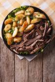 Wyciągnął wieprzowina i smażonymi ziemniakami na tablicy poziomej widok z góry
