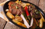 Pyszne jedzenie: wyciągnął wieprzowina i ziemniaczane z bliska. pozio