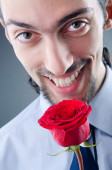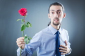 Młody człowiek z czerwoną różą