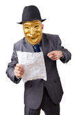 biznesmen z maską ukrywanie swojej tożsamości