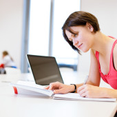 bardzo młodych Kolegium student studia w bibliotece