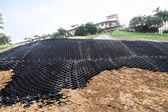 Kontroli erozji zbocza z siatki i ziemi na stromym zboczu