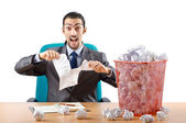 człowiek z dużo zmarnowanego papieru