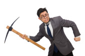 Młody mężczyzna młoteczek na białym tle gospodarstwa