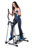 Zdjęcie "młoda kobieta robi ćwiczenia na eliptyczny trener" może być wykorzystywane do celów osobistych i komercyjnych zgodnie z warunkami zakupionej licencji Royalty-free. Obraz jest dostępny do pobrania w jakości wysokiej rozdzielczości do 5760x3840.