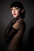 piękny elegancki kobieta w czarnej sukni pomieszczeniu