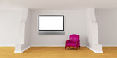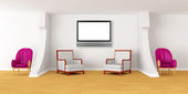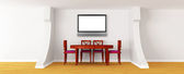 Zdjęcie "Sala galerii z krzesła, stołu metalowe i lcd tv" może być wykorzystywane do celów osobistych i komercyjnych zgodnie z warunkami zakupionej licencji Royalty-free. Obraz jest dostępny do pobrania w jakości wysokiej rozdzielczości do 5760x3840.