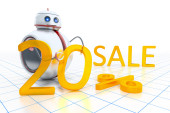 Zdjęcie "Robot oferuje sprzedaż i rabaty" może być wykorzystywane do celów osobistych i komercyjnych zgodnie z warunkami zakupionej licencji Royalty-free. Obraz jest dostępny do pobrania w jakości wysokiej rozdzielczości do 5760x3840.