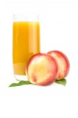 soki brzoskwiniowe w szklance i świeżych brzoskwiń