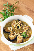 Makrela z grilla Ryby zapiekane z cebulką i orzeszkami pinii