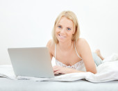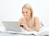 młoda kobieta piękne zakupy za pomocą laptopa