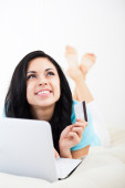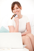 młoda kobieta piękne zakupy za pomocą laptopa