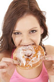piękna kobieta jedzenie smaczne pączki