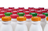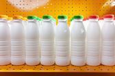 Produkty mleczne butelki z jasne pokrywy na półce w sklepie