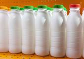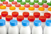 Produkty mleczne butelki z jasne pokrywy na półce w sklepie