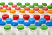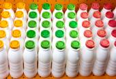 Produkty mleczne butelki z jasne pokrywy na półce w sklepie
