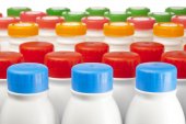 Zdjęcie "Produkty mleczne butelki z jasne pokrywy na półce w sklepie" może być wykorzystywane do celów osobistych i komercyjnych zgodnie z warunkami zakupionej licencji Royalty-free. Obraz jest dostępny do pobrania w jakości wysokiej rozdzielczości do 5760x3840.