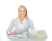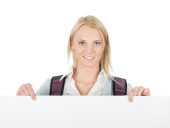 dziewczyny piękną studentkę prezentacji pustej planszy