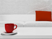 Filiżankę kawy na kanapie