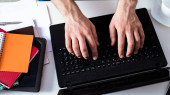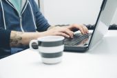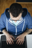 młody człowiek z laptopem