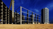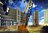 Plac budowy o zachodzie słońca