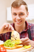 Zdjęcie "człowiek z tacą wspaniałe śniadanie." może być wykorzystywane do celów osobistych i komercyjnych zgodnie z warunkami zakupionej licencji Royalty-free. Obraz jest dostępny do pobrania w jakości wysokiej rozdzielczości do 5760x3840.
