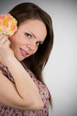 piękna, młoda dziewczyna z orchidea na białym tle.