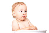 dziecko siedzi w dużym garnku.