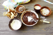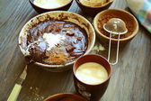 Przygotowanie ciasta czekoladowe ciasto na stole z bliska