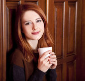 Zdjęcie "rude dziewczyny w stylu picia kawy w pobliżu drzwi drewniane." może być wykorzystywane do celów osobistych i komercyjnych zgodnie z warunkami zakupionej licencji Royalty-free. Obraz jest dostępny do pobrania w jakości wysokiej rozdzielczości do 5760x3840.